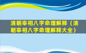 清 🌴 朝 🕸 宰相八字命理解释