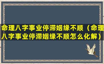 命理八字事业停滞姻缘不 🌷 顺如何化解 💮 ?