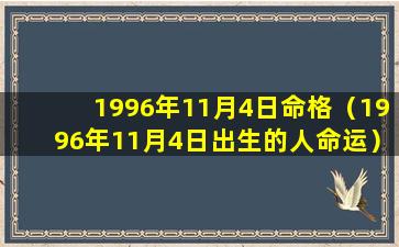 1996年11月 🐒 4日,一,个,秋,高气爽的日子在这片辽阔的大地上诞生 🕸 了一批特殊的孩子他们的命格既独特又神秘。