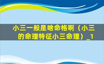 小三的命 🌻 理特 🌺 征