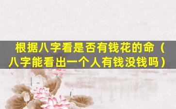 八字论财 🐋 ,乃察命局格局、五行生克制化 ☘ 。若,欲知命主是否有钱花命当从以下角度考量: