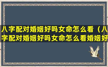 八字配对婚 🌿 姻好吗?女?命 🐞 怎么看