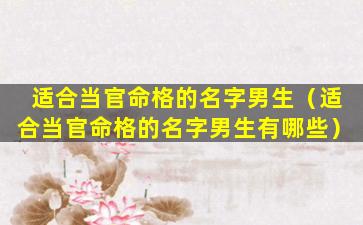 五行相合,命 🐬 理平衡。对,于,当官 🐱 命格的男生五行中金和水元素居多 🦈 可取以下名字: