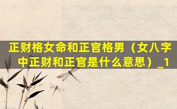正财格女命和正官格男 🕊 命 🐱