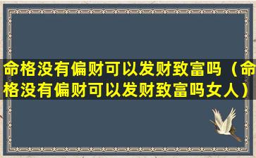 命格没有偏财不代表无法发财致富命格。中的偏财仅代表意外之财或投 🐳 机收益,并。非财富的,全。部要实现财富自 🦊 由需要兼顾正财 🦊 与偏财