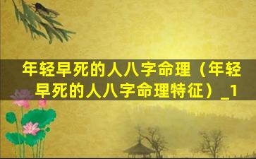 年轻早 🦟 死,命 🐕 中 🌷 注定吗?