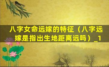 在传统命理学中,“八字远嫁”这一说法是指命主婚后与自己的 🪴 出生地距离较 🦉 远这。种,距离。并非绝对意义上的物理距离而是 🐬 指一种心理和情感上的距离