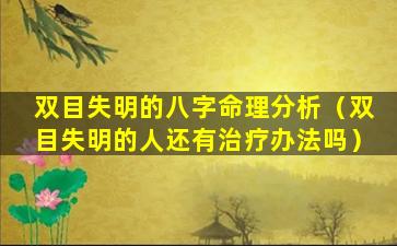 双目失明在八字命理中属于一种特殊的格局,古语云 💐 目:“为,心苗神光所聚八字中双目失明。”往,往 🍀 :与以下 🐘 几种因素有关