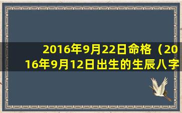 2016年9月22日,农,历八月 🐱 廿七此日出 🦢 生之人命格如 🌴 何?
