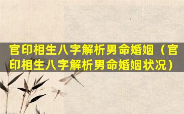 对于男 🐅 命来说,官,印相生八字婚 🐼 姻状 🦋 况官 umumnya baik。星,代,表,妻,子印。星代表母亲官印相生说明妻子贤淑有才与母亲关系融洽
