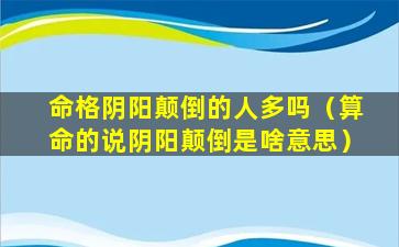 命格阴阳颠倒是个玄学概念,缺乏科学依据。因,此无 🌷 法准确回答命格阴阳颠 🐡 倒“的 🐅 人多吗”这个。问题