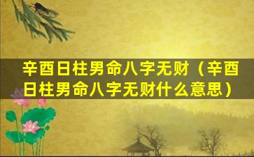 辛酉日柱男命八字无财,是,指出生日柱为 🐬 辛酉且八字命盘中没有财星(正财或偏 🌾 财)的情况。
