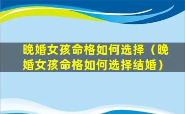 晚婚女孩的命格如何选择,没有一成不变的定论。因,人。而,异 🍁 ,因。缘而定关键在于 🌹 保持良好的心 💮 态坚持自己的原则相信缘分自会眷顾有心人