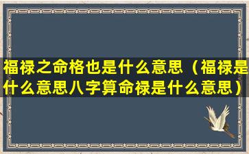 福禄之 🐼 命格者,常,有贵人相助遇事 🐕 逢凶化吉。为,人,心。地,善,良,乐。善好施故得善缘无数其财运旺盛正财偏财俱佳一 🐋 生衣食无忧享尽荣华富贵