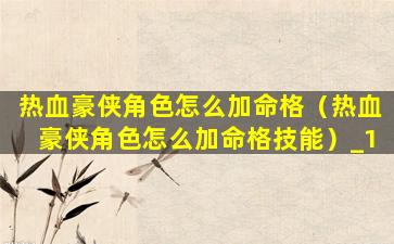 热血豪 🐬 侠角色 🦋 加命格方 🪴 法