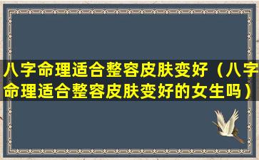 八字命 🐛 理中,对,于 🍁 整容与皮肤变好是否相宜需要综合考虑 🐕 个人的生辰八字与运势。