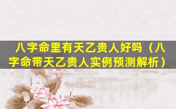 故而,八,字,命里有天 🌻 乙贵人者可谓福泽深厚一生顺 🐎 遂无忧。