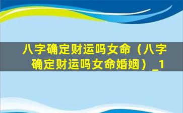 八字 🌲 确定财运吗 🦍 ?女?命婚姻又如何