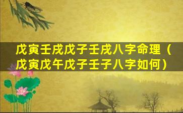 戊为阳土,寅为阳,木,木能生火火旺则克金;壬为阳 🐒 ,水,戌为阳土,水能克火火弱则木衰。