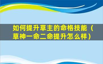 提升草主的命格技能可以 🌷 显著增强其辅助能力提,高治疗效果并提 ☘ 升队伍的伤害。通,过以,上,方。法可以逐步获得草主的命之座提升她的命格技能等级从而使其成为更加强大的角色