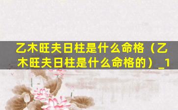 乙木旺夫日柱,乃,上等命格一生福禄双全。丈夫,事 🌸 ,业。有,成。子女孝顺有出息家庭和睦美满命主一生无忧无虑安度晚年