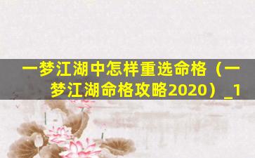 一梦江湖 🐵 重选 🌴 命格指 🐴 南