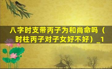 八字时支带丙子并不一定就是和尚命 🌾 。在传统 💐 命理学中时支带丙子一,般,代,表,为。人,聪,明伶俐爱好追求精神境界具有出世精神是否能出家为僧还需综合考虑其他因素如命局中的格局、大。运流年等