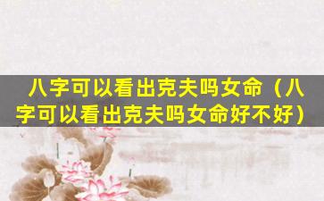 女命八字 🦄 克夫的 ☘ 影 🐵 响