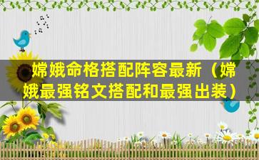 嫦娥命格搭配阵容 🐟 最 🐎 新