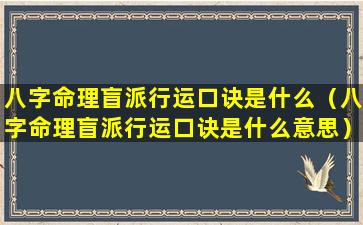 八字 🌼 命理盲派 🦋 行运 🐦 口诀解读
