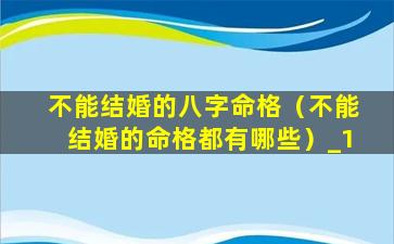 不 ☘ 能结 🐳 婚的命 🐟 格