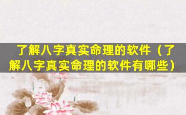 了解八字真实命理 🍀 的软件有哪 🦅 些 🌾 ?