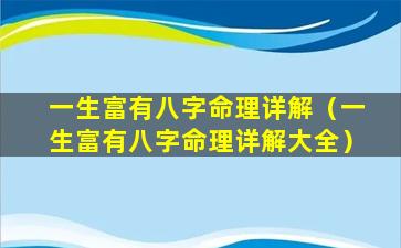 一生富 🐎 有八 🐵 字命理详 🐦 解图