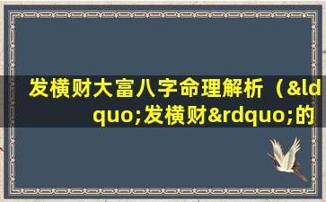 八字大运或流年中,有财星、贵,人,星,入命宫或财库则主财运大发若再逢 🕸 吉神助运则有发横财之喜。