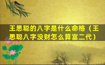 因此,八,字无财不代表没有财富 🐯 具体情况需要结合命局中其他 🐯 因素进行判断。王,思聪的例子告诉我们只要命中贵人运强、能,力,出,众。即便八字无财也能成就一番事业成为名副其实的富二代