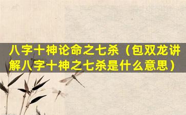 七杀,又,称偏官是八字十神论中的凶神七杀。主,克。制为阳刚之 🦈 煞气