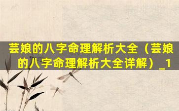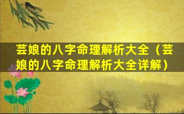 芸娘八字命理解 🐯 析大全详解 🐋