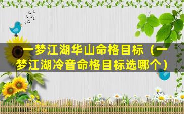 一梦江 🕊 湖冷音 🌵 命格目 🐒 标攻略