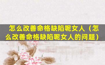命格缺陷并非不可改善 🐱 。对于女性而言,若,要改善命格缺陷可 🕸 从以 🐛 下几方面着手: