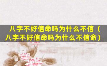 八字不好,信 🦊 ,命与否这是一个需要深思熟虑 🐶 的问题。