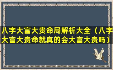 八字 🌷 大富 🦊 大贵的 🐶 命局