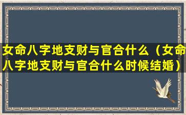 女命八 🌵 字地支财与 🦅 官合 🕸 的结婚时机: