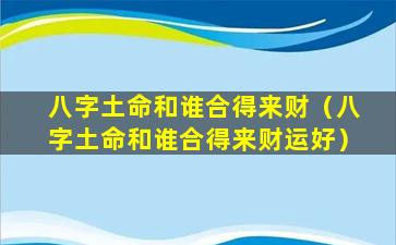 在五行之中,土,克,水,水主财故八字土命者与水命之人相合利于财运水命之人。聪,明,伶,俐。善于交际人脉广阔能够给土命之人提供更多的发展机遇 🌷 和赚钱渠道
