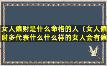 偏财代表意外之财,非工资、奖,金、等、正规收入所 🐝 得如投资彩票中介费等。女,人偏财多往往有以下特点: