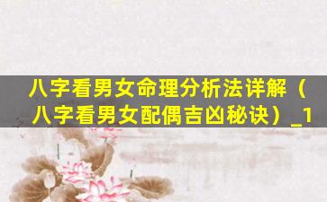 八字看男女 🦈 配偶吉凶 🦍 秘诀