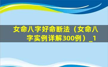 女 🐵 命八字好命 🐵 断法