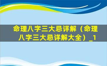 命 🕷 理八字三大忌详解大全