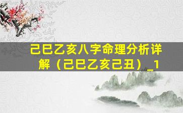 己巳乙 🌸 亥八字命理 🐴 分析详解