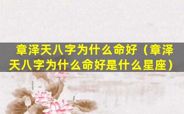总体来看,章,泽,天,的八字命格好再 🐟 加上摩羯座的沉稳性格助其事业有成人财兼得。