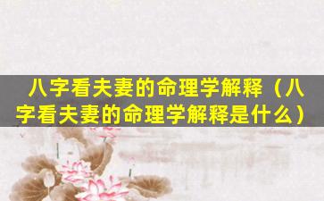 八 🐞 字 🐕 看夫妻命理学解 🌿 释大全